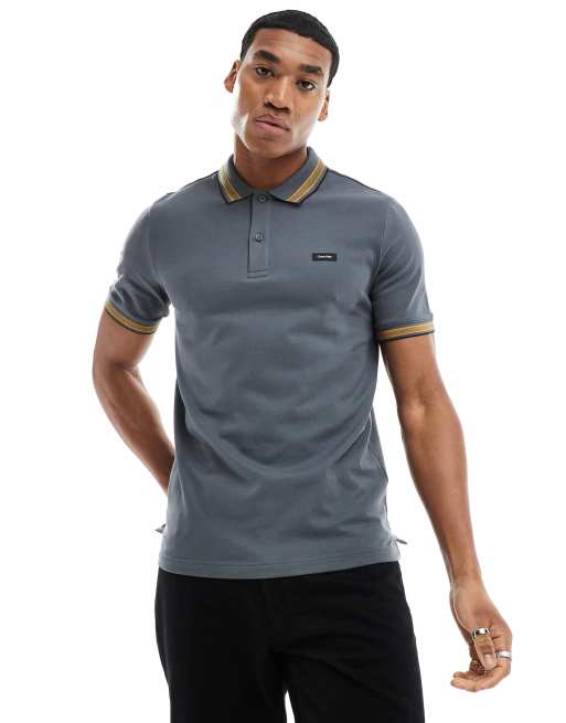 Calvin Klein - Polo in piqué stretch grigia con bordi a contrasto