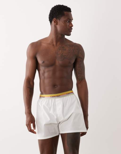 Calvin Klein - Pride Cotton - Boxer bianchi con elastico in vita arcobaleno
