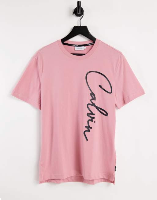 Calvin Klein - Summer script - T-Shirt rosa cipria con logo sul davanti e sul retro