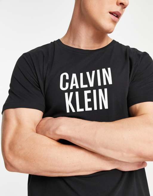 Calvin Klein - T-shirt da bagno comoda nera con logo sul petto