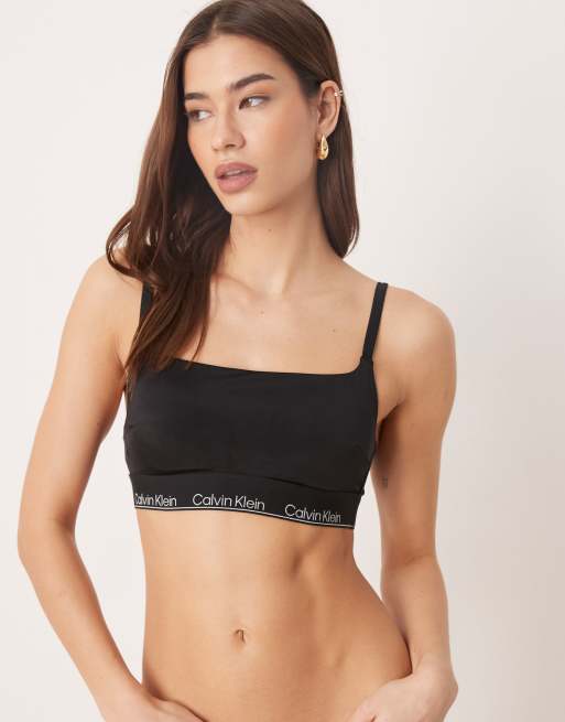Calvin Klein - Top bikini stile bralette con scollo squadrato e fascia con logo nero