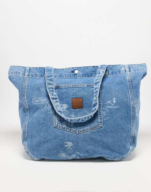 Carhartt WIP - Borsa shopping unisex in denim blu con stampa