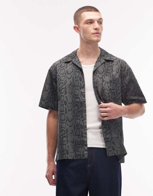 Carhartt WIP - Camicia kaki scuro con stampa mimetica pitonata