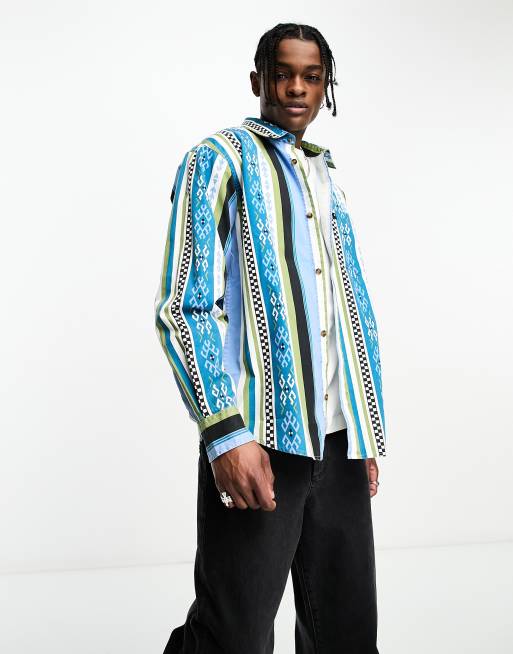 Carhartt WIP - Coba - Camicia a maniche lunghe blu con stampa azteca