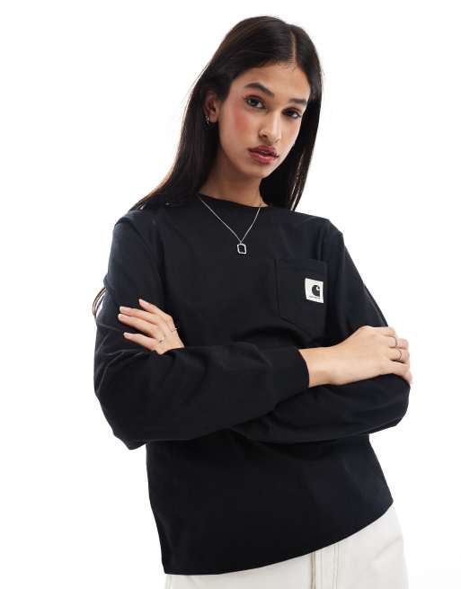 Carhartt WIP - T-shirt nera a maniche lunghe con tasca