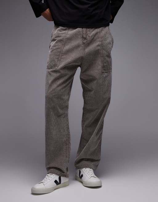 CAT - WWR - Pantaloni ampi in velluto a coste pesante lavaggio acido marrone con fibbia