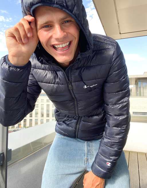 Champion - Cappotto imbottito con cappuccio blu navy mimetico