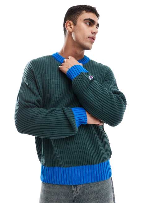 Champion - Rochester - Maglione stile college color verde bottiglia e blu reale