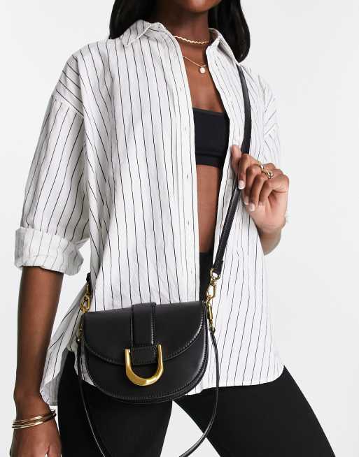Charles & Keith - Borsetta a tracolla nera con chiusura dorata
