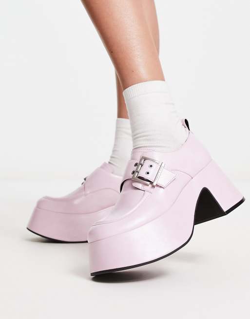 Charles & Keith - Mocassini con plateau rosa con fibbia