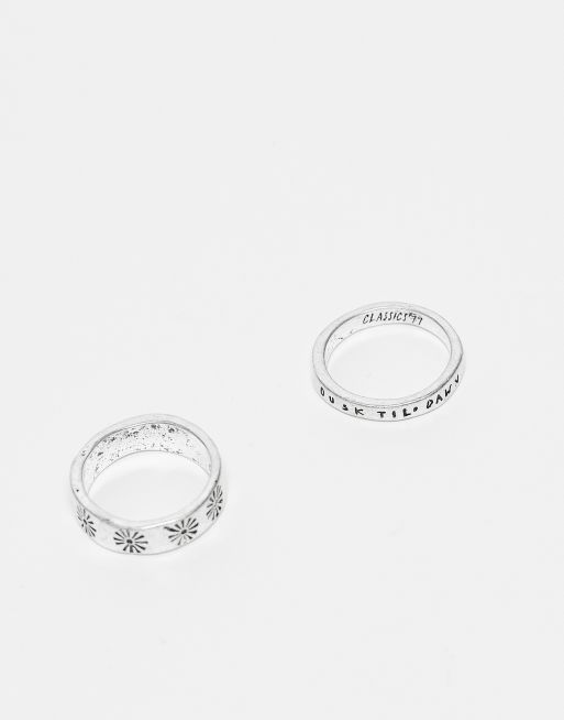 Classics 77 - Confezione di anelli color argento con scritta "Dusk Til Dawn"