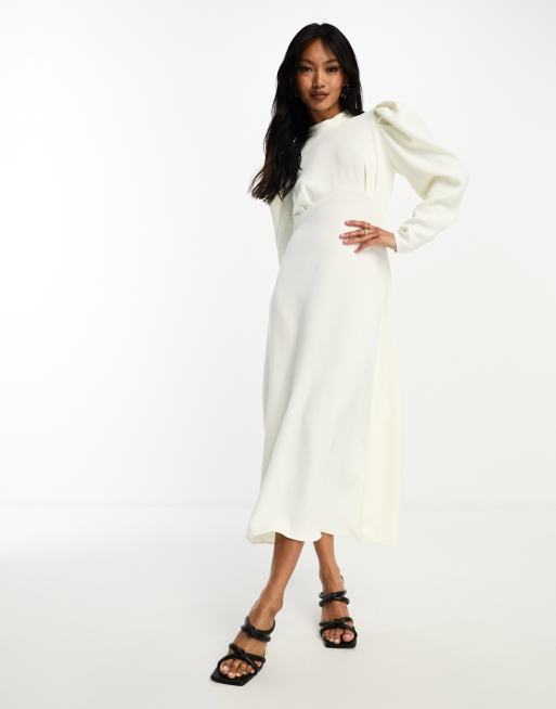Closet London - Vestito color crema con maniche a sbuffo e gonna al polpaccio