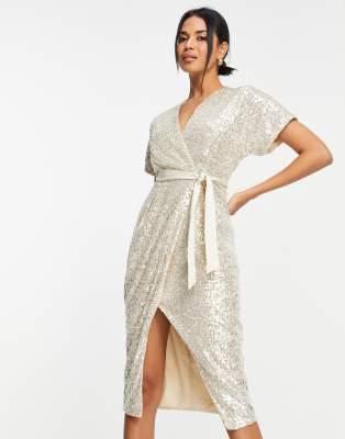 Closet London - Vestito kimono avvolgente con paillettes color champagne