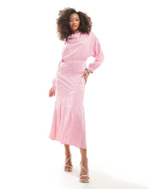 Closet London - Vestito midi accollato svasato rosa chiaro a fiori con scollo ad anello