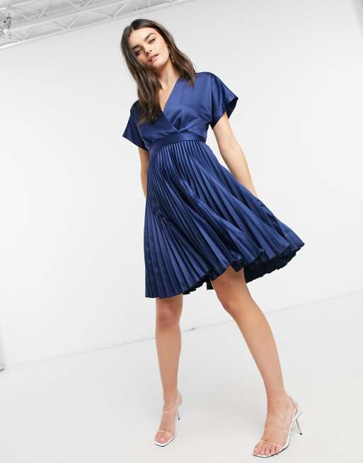 Closet London - Vestito skater midi a pieghe con davanti a portafoglio blu navy