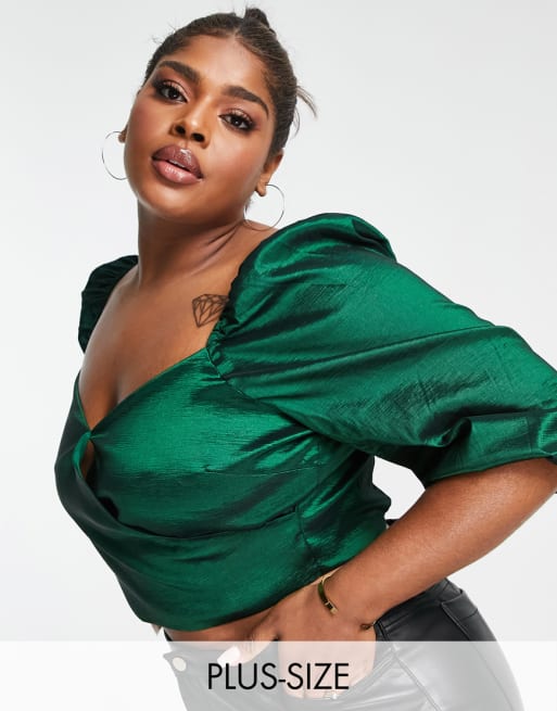 Esclusiva Collective The Label Curve - Coordinato con crop top incrociato e minigonna color smeraldo