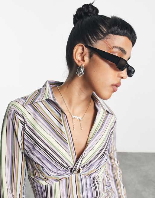 COLLUSION - Camicia aderente a righe pastello con apertura