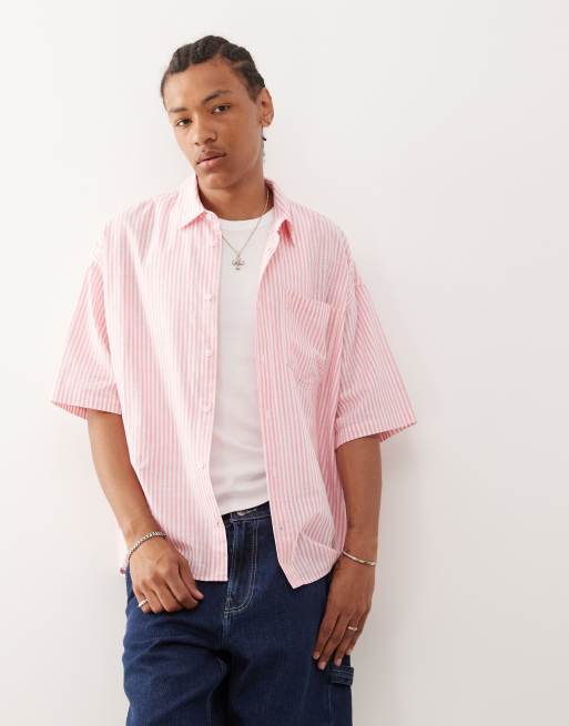COLLUSION - Camicia squadrata vestibilità skate rosa a righe