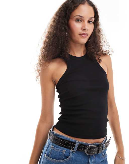 COLLUSION - Canotta a coste nera con scollo a vogatore