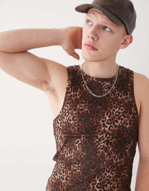 COLLUSION - Canotta attillata a coste con stampa animalier