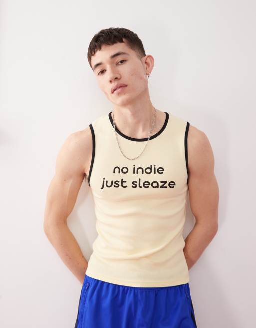 COLLUSION - Canotta da festival attillata gialla con scritta "Sleaze"