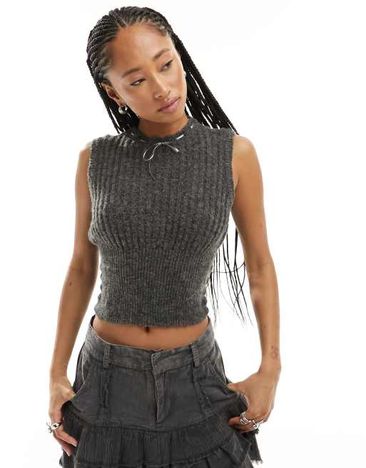 COLLUSION - Canotta in maglia grigia con finiture in pizzo