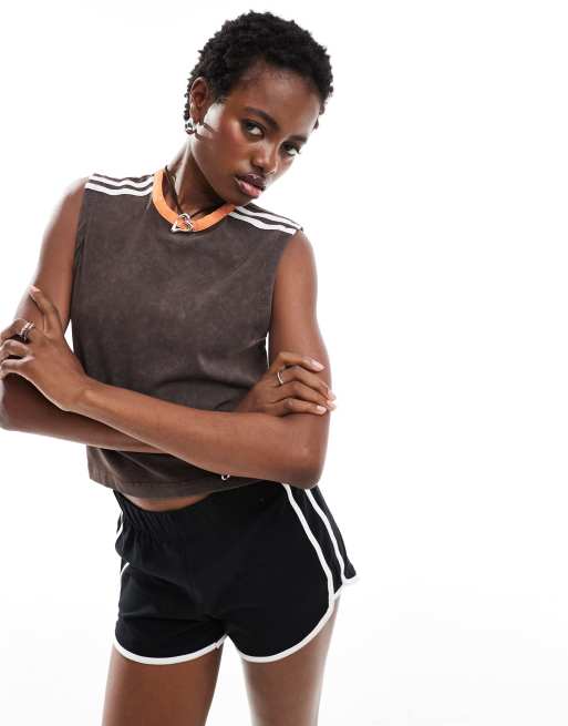 COLLUSION - Canotta marrone slavato con finiture a contrasto