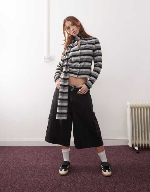COLLUSION - Cardigan aderente soffice monocromatico a righe con sciarpa