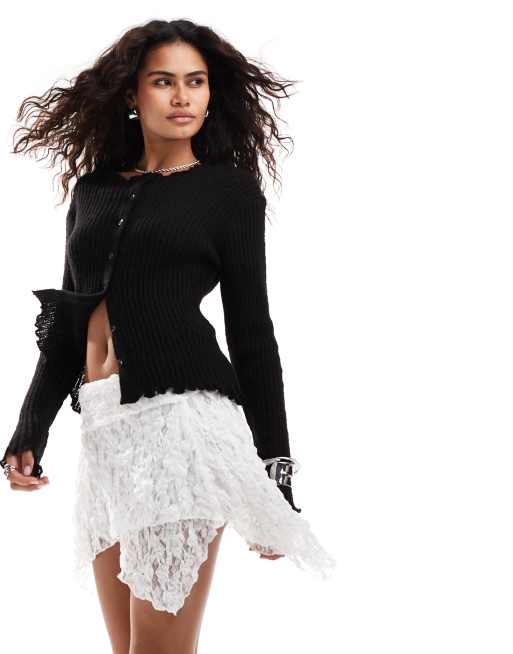 COLLUSION - Cardigan nero con bordi smerlati e scollo a barchetta