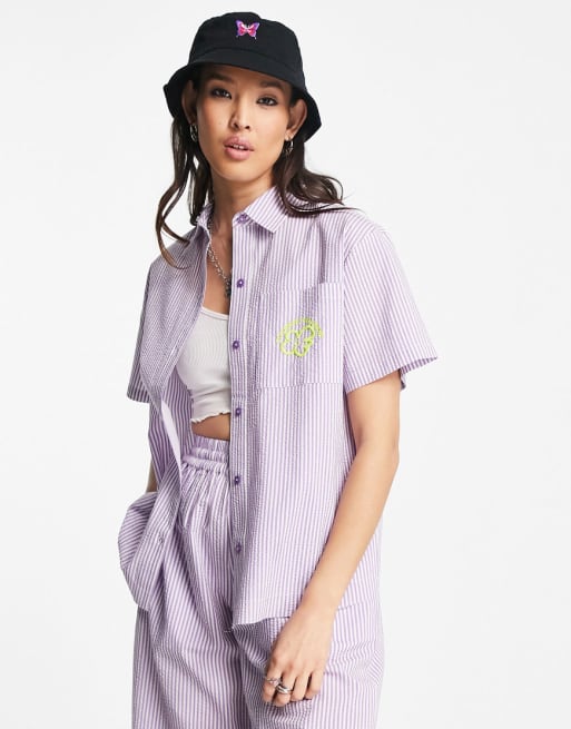 COLLUSION - Coordinato con camicia e pantaloncini taglio lungo lilla gessato