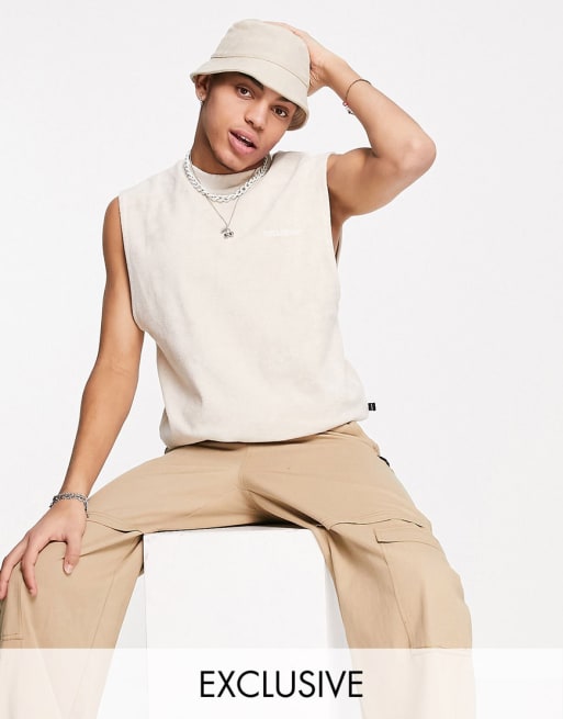 COLLUSION - Coordinato con canotta e pantaloncini stile basket in spugna beige