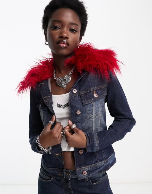 COLLUSION - Coordinato con giacca di jeans corta Y2K blu scuro slavato e jeans