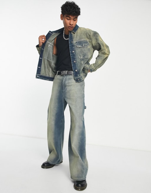 COLLUSION - Coordinato in denim oversize con giacca e jeans cargo lavaggio giallo