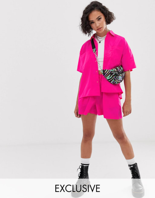 COLLUSION - Coordinato in nylon rosa con fasce riflettenti