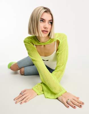 COLLUSION - Coprispalle da spiaggia giallo a maniche lunghe in maglia fine