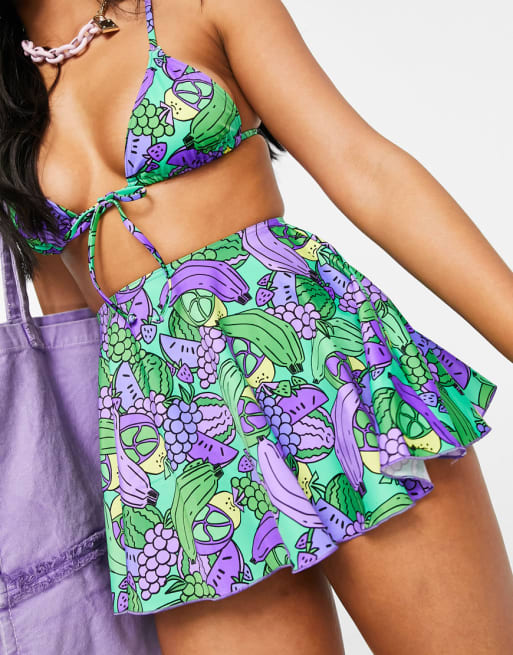 COLLUSION - Costume da bagno sgambato, bikini e gonna con stampa di frutta tropicale