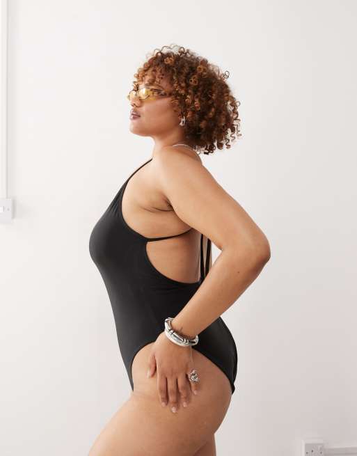 COLLUSION Curve - Costume da bagno nero con scollo rotondo sul retro