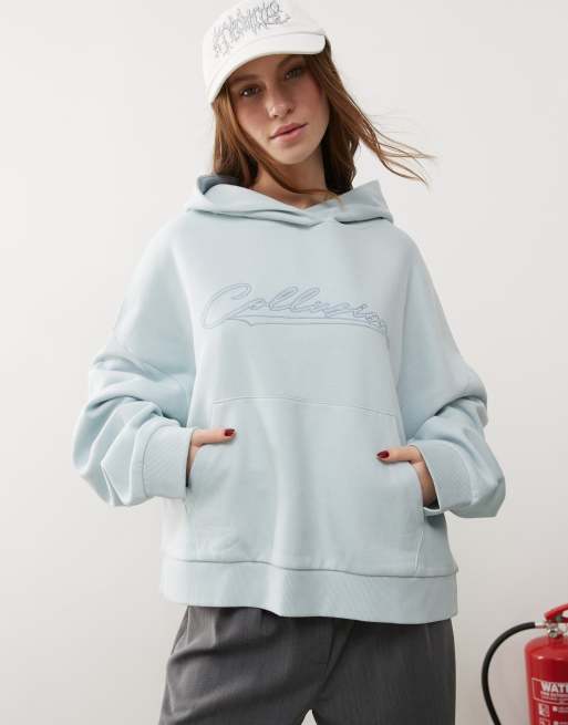 COLLUSION - Felpa blu polvere con cappuccio e ricamo
