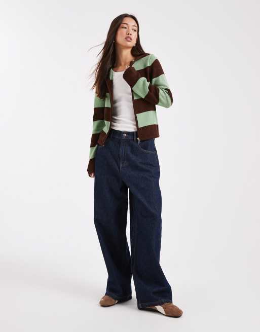 COLLUSION - Felpa con cappuccio mini in maglia color menta e cioccolato a righe