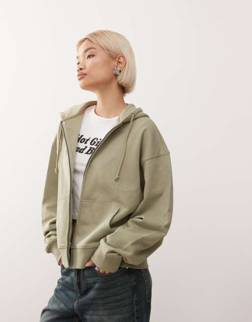 COLLUSION - Felpa con cappuccio squadrata grigio mélange con zip