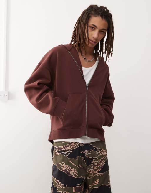 COLLUSION - Felpa squadrata marrone con cappuccio e zip