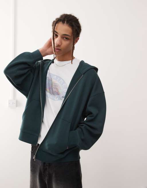 COLLUSION - Felpa squadrata verde scuro con cappuccio e zip