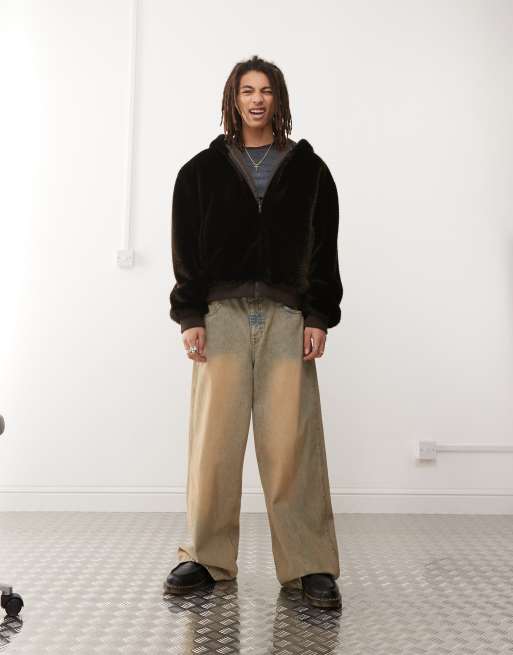 COLLUSION - Giacca in pelliccia sintetica marrone con cappuccio