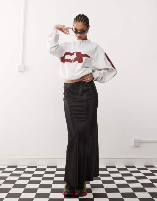 COLLUSION - Gonna a sottoveste lunga nera in raso