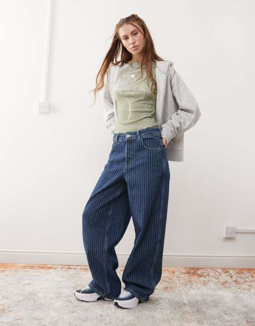 COLLUSION - Jeans ampi lavaggio stone wash a righe