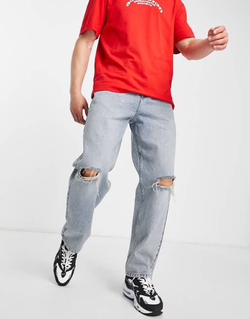 COLLUSION - Jeans larghi lavaggio candeggiato con strappi sulle ginocchia