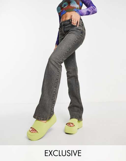 COLLUSION - Jeans rigidi a zampa stile Y2K a vita medio alta lavaggio effetto sporco