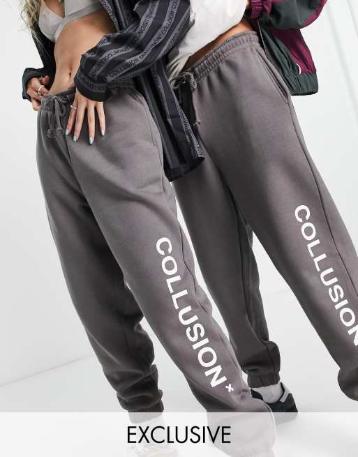 COLLUSION - Joggers unisex con logo grigio scuro