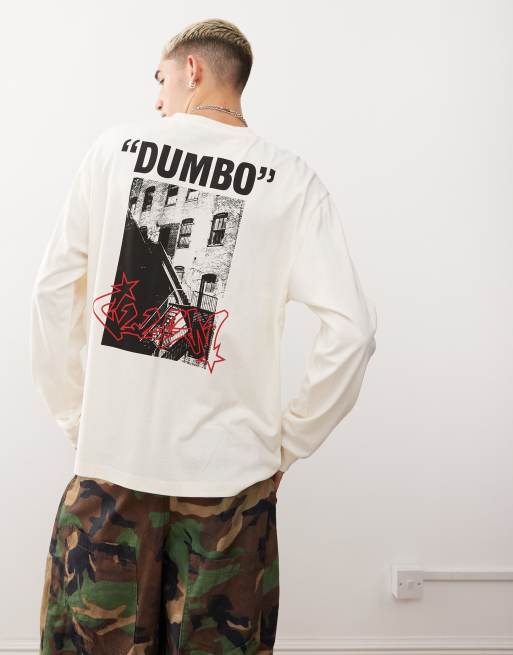 COLLUSION - Maglietta a maniche lunghe écru con stampa sul davanti e sul retro