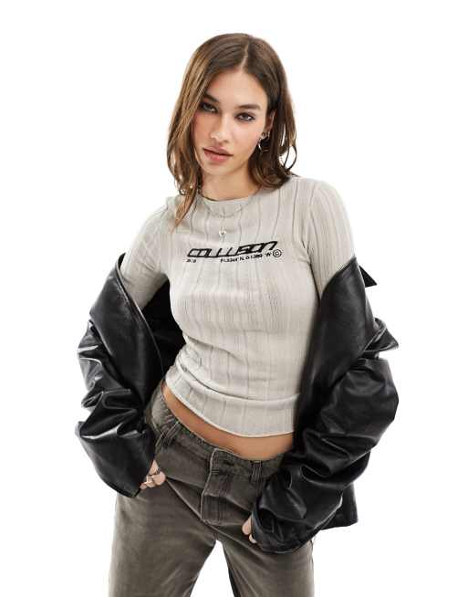 Collusion - Maglione a coste trasparenti con brand ricamato grigio chiaro